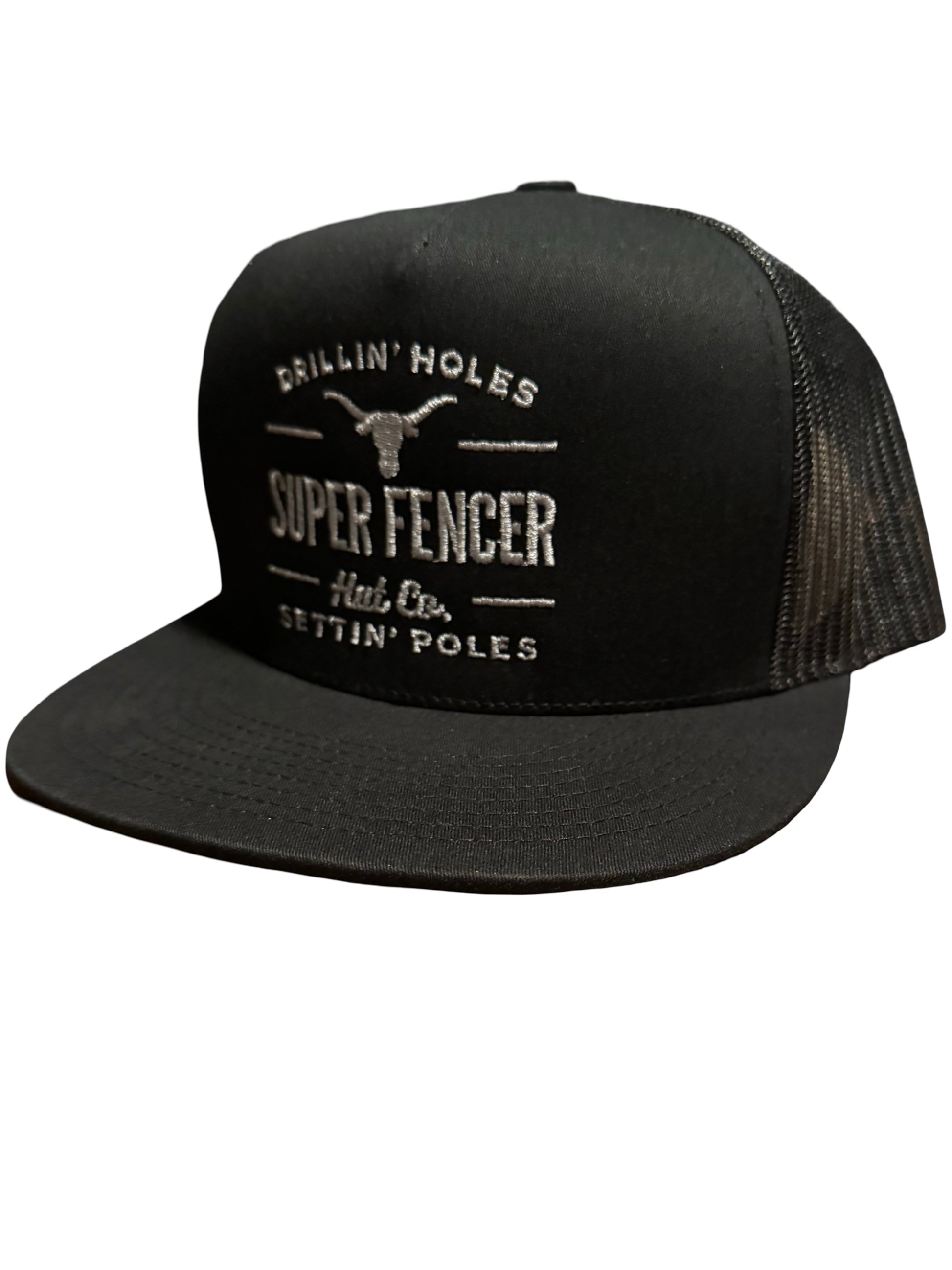 Black hat with black mesh backing