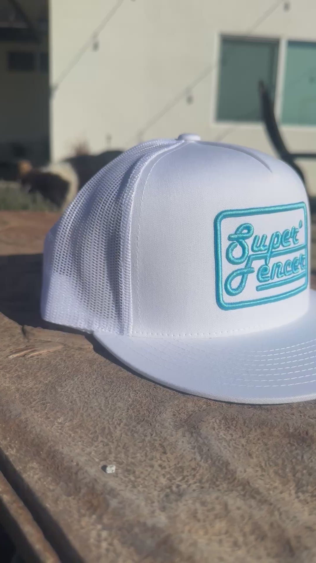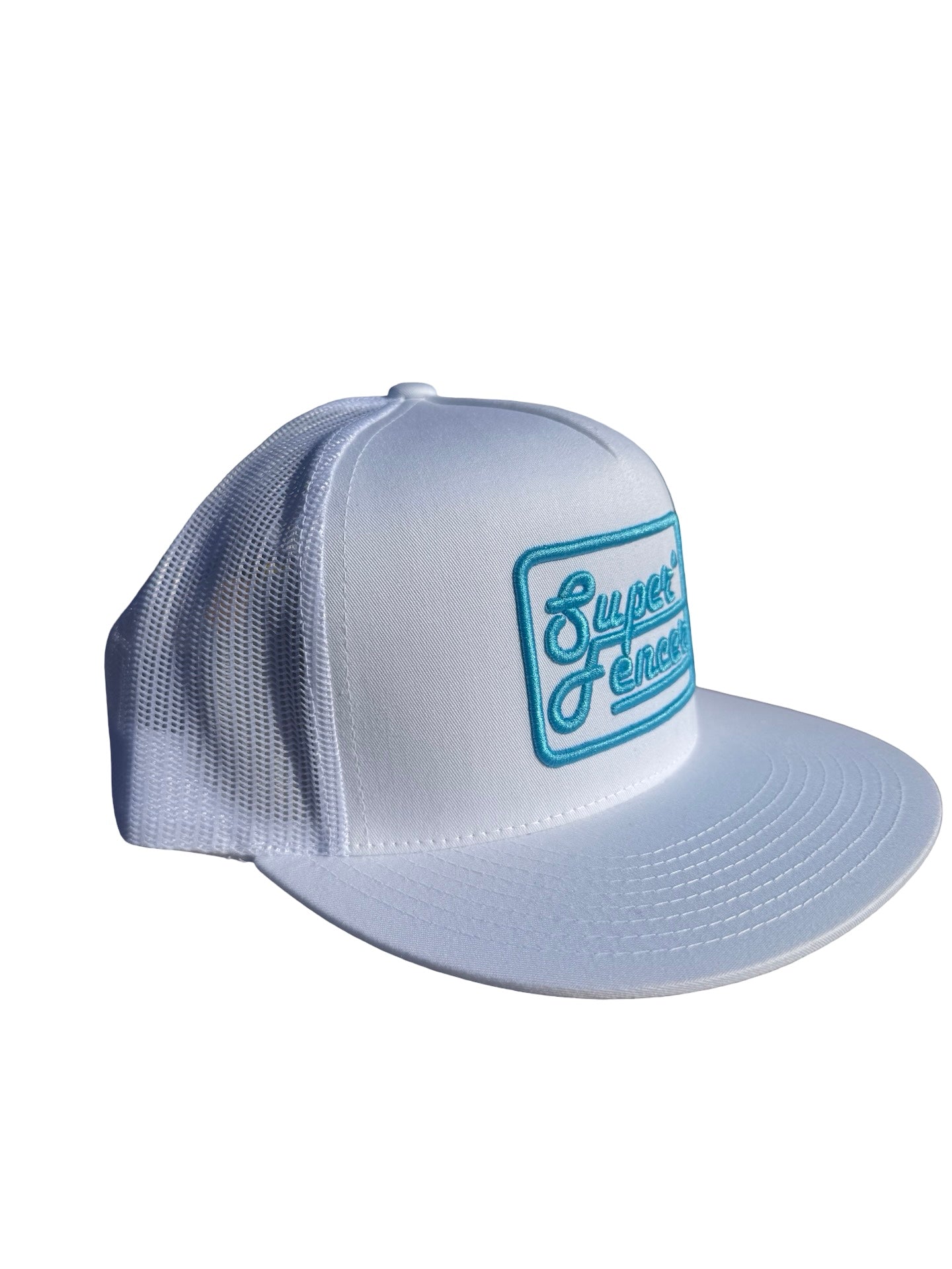 White snapback hat with white mesh backing